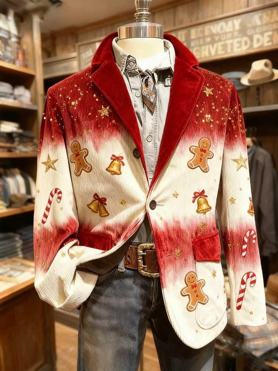 Men's Vintage Christmas Snowflake Gingerbread Man Casual Jacket