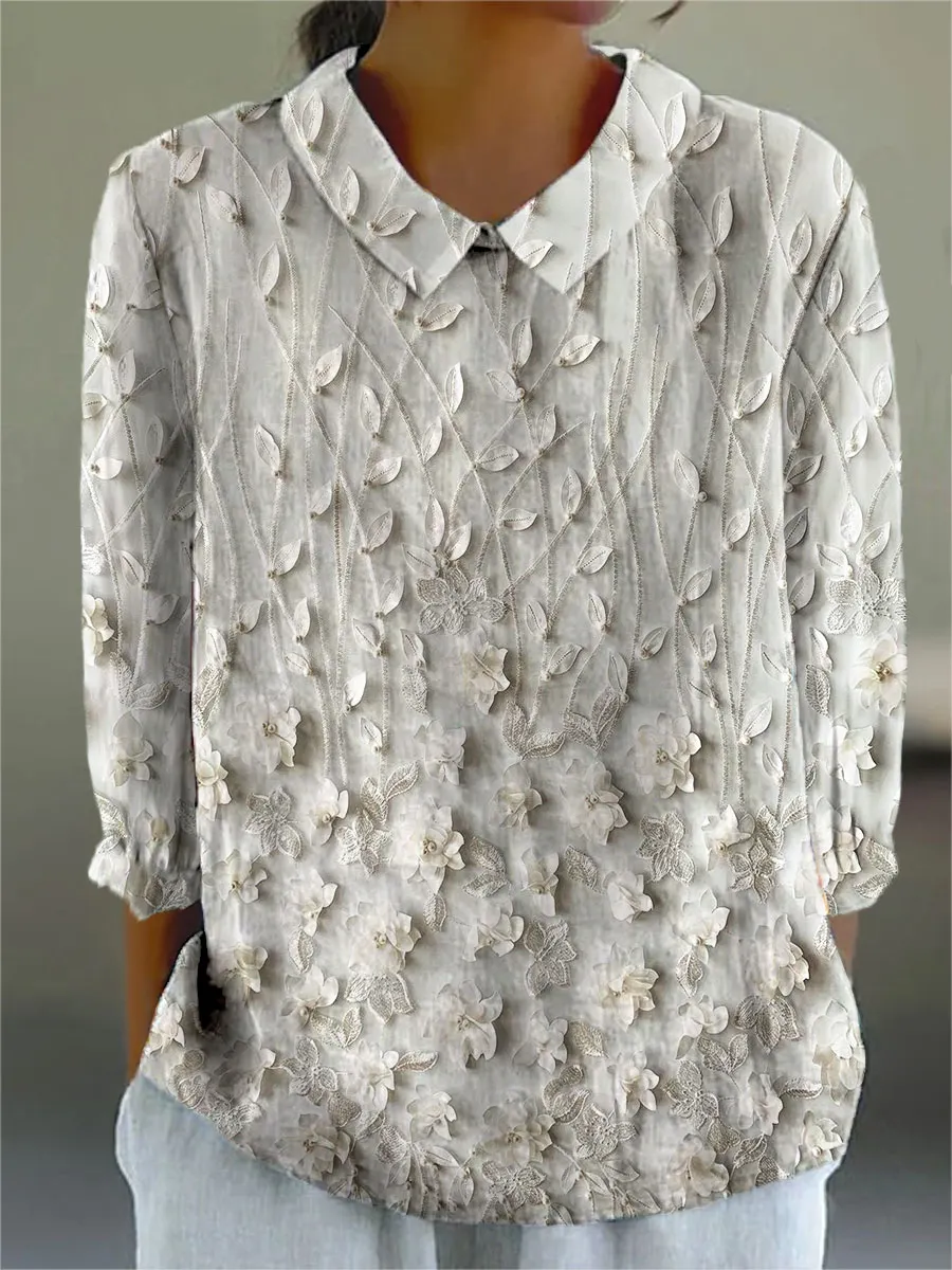 Women's Retro Pattern Art Print Casual Cotton And Linen 3/4 Sleeve Shirt