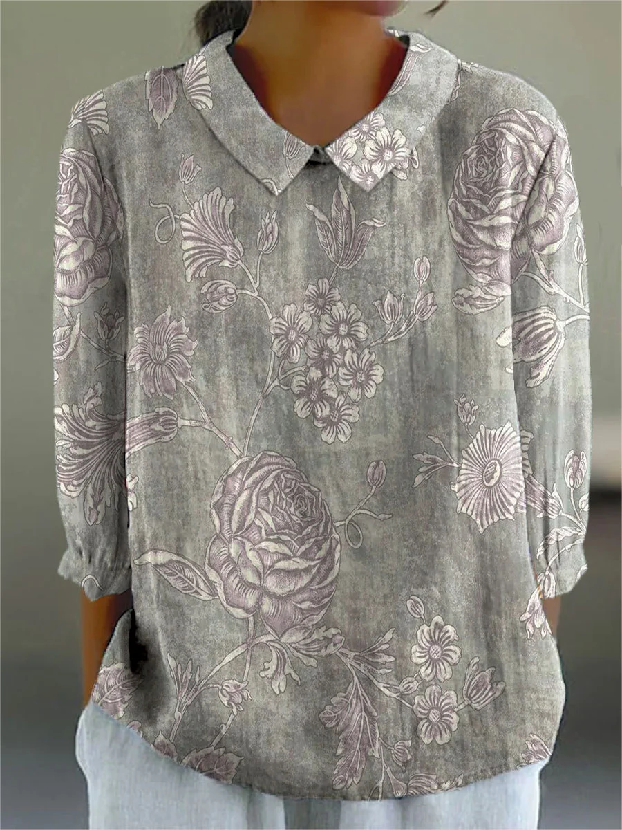 Women's Retro Pattern Art Print Casual Cotton And Linen 3/4 Sleeve Shirt